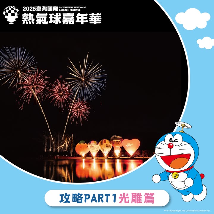 #熱氣球攻略 𝙋𝘼𝙍𝙏 𝟭【光雕篇】上線小編來做彙整達人! 光雕音樂會必看重點、入場攻略…幫你一次搞懂 帶上相機、備好電力、帶著E人心情, 今年的光雕,我們一起閃閃發光 今年的夏天,我們一起可可愛愛 𝟮𝟬𝟮𝟱 臺灣國際熱氣球嘉年華 ▸ 𝟳月𝟱日-𝟴月𝟮𝟭日 ▸ 造型球展演及繫留體驗時段 .上午場 𝟬𝟱:𝟯𝟬 - 𝟬𝟳:𝟬𝟬 .下午場 𝟭𝟳:𝟬𝟬 - 𝟭𝟴:𝟯𝟬 ▸ #每週二固定公休日 ▸ 追球日誌/停車資訊規劃中 #熱氣球嘉年華 #台東旅遊 #台東景點 #doraemon #哆啦A夢熱氣球 #哆啦A夢陪你共遊台東天空 - 2025-05-21