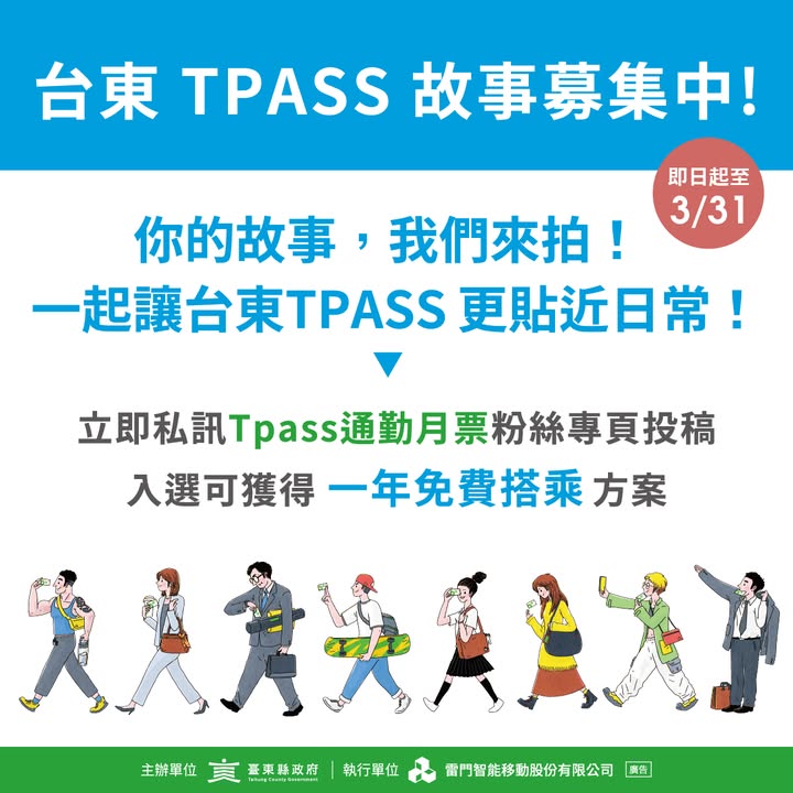 台東TPASS故事募集中立即私訊 Tpass通勤月票 投稿去! 詳細活動辦法請看 有了台東TPASS讓生活更有趣!? 快來投稿你的故事,就有機會獲得 「台東TPASS通勤月票方案免費搭乘一年」 還有機會將故事拍攝成宣傳影片呦(❁´◡`❁) #台東 #TPASS #故事 #投稿 #宣傳影片 #募集 #台東旅遊 - 2025-02-21