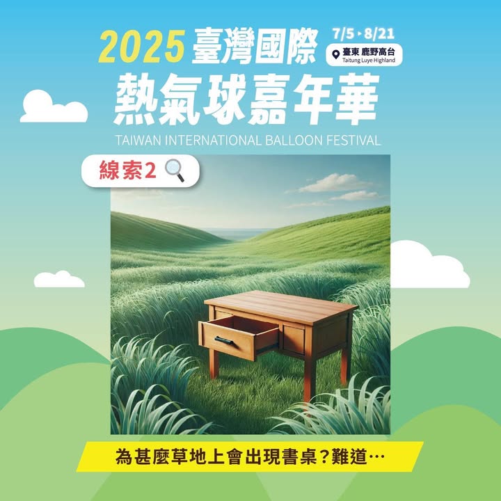 謎一般的熱氣球嘉年華全新𝗜𝗣登場!小編知道你們等不及了! 上班被問、連下班睡覺,也不放過小編 新的線索這不就來了嗎!到底是什麼呢 線索𝟮 - 為甚麼鹿野高台會出現書桌?難道⋯ 線索𝟯 - 千萬不要出現老鼠阿!小心它咬掉你的⋯ #一起來猜猜看! #還沒看過線索𝟭的捧油可以看看留言喲 全國記者會𝟯/𝟯𝟬 𝟭𝟵:𝟬𝟬 一起來看無人機揭曉 #今年熱氣球最強𝗜𝗣 #熱氣球嘉年華 #台東旅遊 #台東景點 #全新IP登場 #3月30日 #臺東縣立體育場 - 2025-03-19