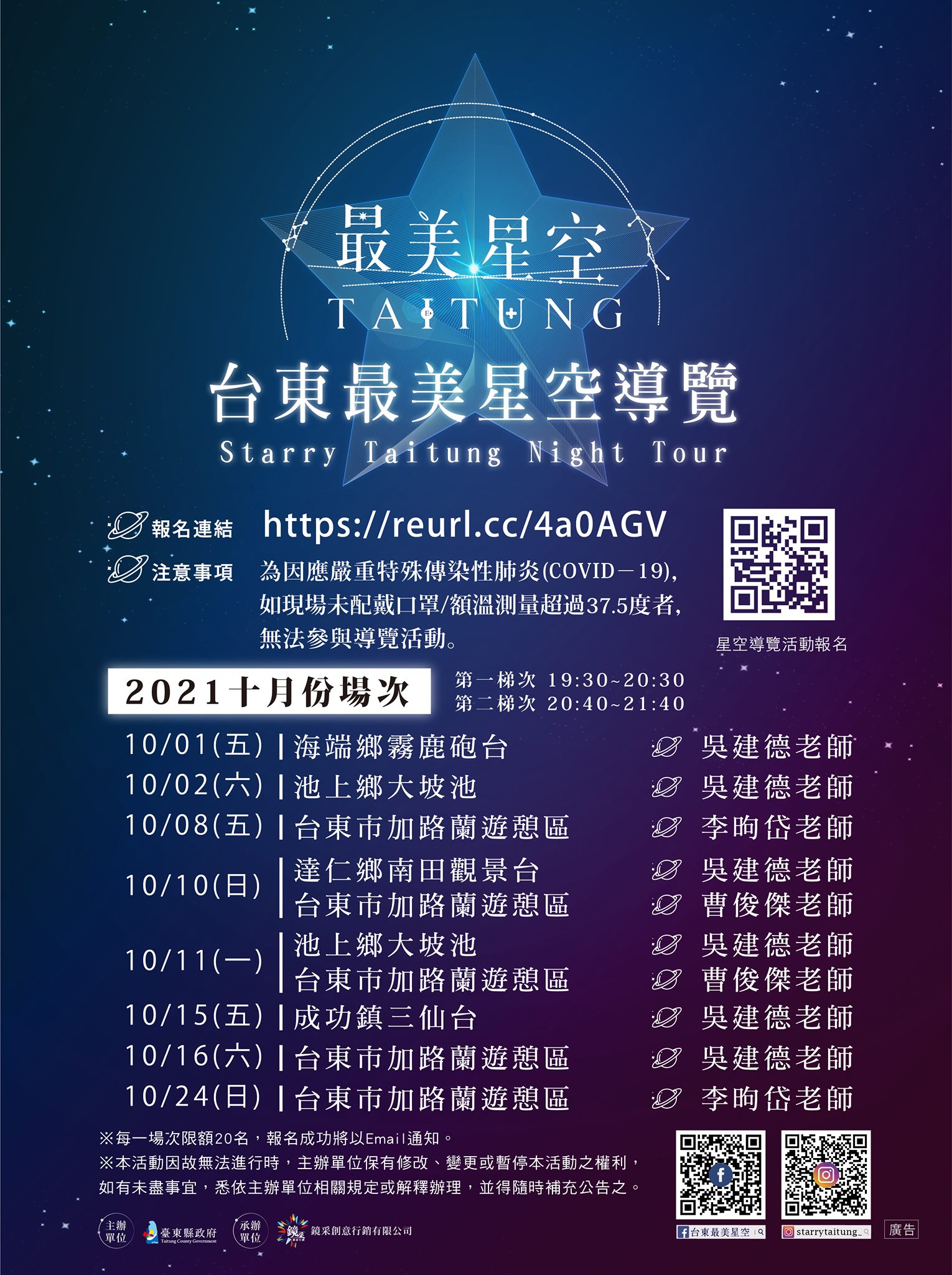導遊名單可上台東最美星空粉絲專頁查詢:https://www.facebook.com/StarryTaitung/posts/595603651117264