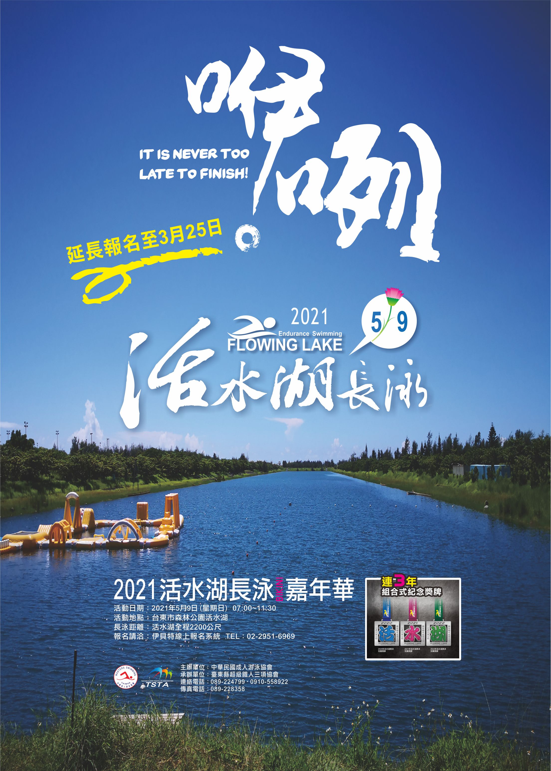 時間 活動內容 06:00 工作人員集合 07:00 選手集合 07:30 大會開幕、主席、貴賓致詞 07:45 長泳安全相關說明 07:45 泳士熱身、身障泳士下水 08:00 開始依大會編號順序下水【按泳帽顏色,隨舉牌運動志工引導】 09:00 截止下水時間 11:00 救生人員湖面清場 11:30 活動結束