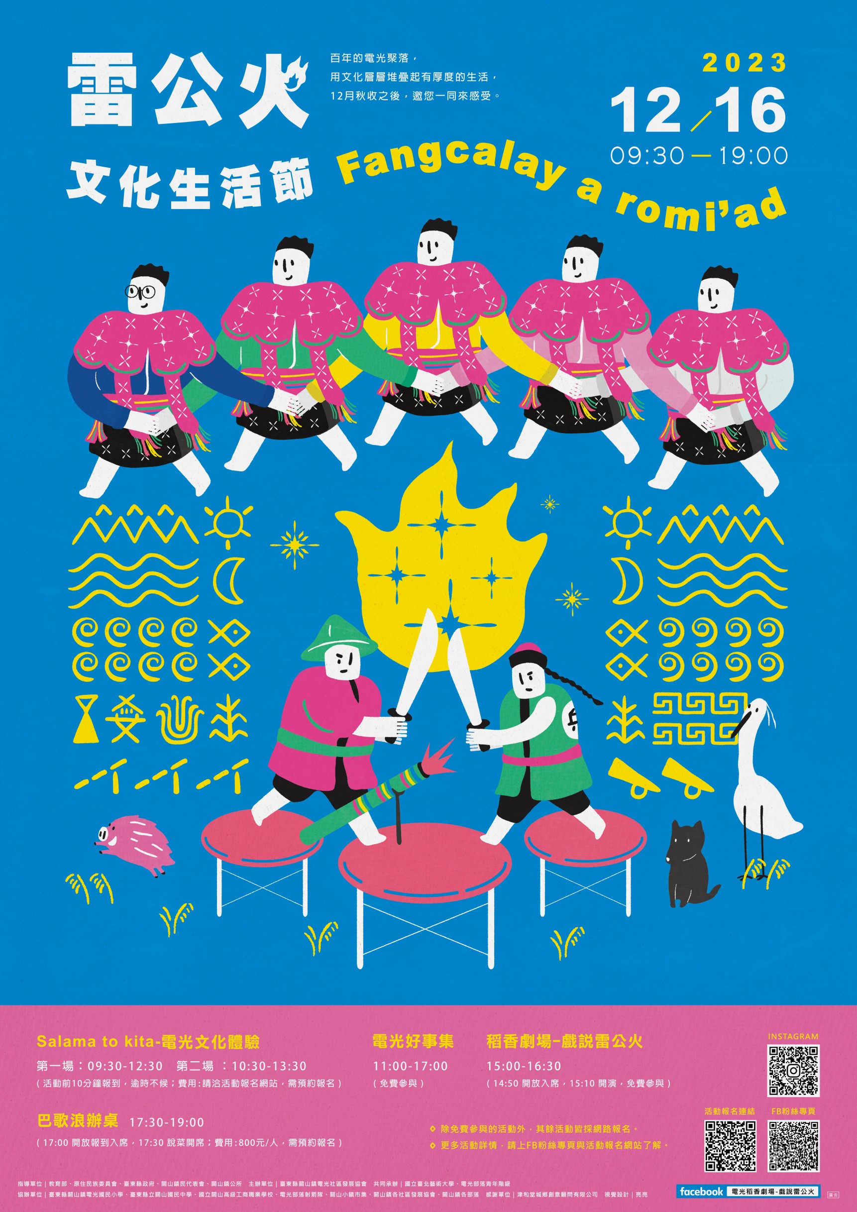 除「電光文化體驗」及「巴哥浪辦桌」採預約報名繳費制,「電光好事集」及「稻香劇場-戲說雷公火」無需報名即可免費參與。
