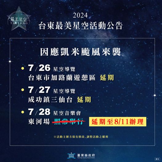 各場次音樂會及導覽報名等資訊請參閱活動臉書:https://www.facebook.com/StarryTaitung/?locale=zh_TW