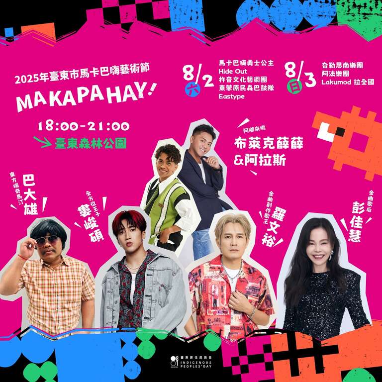 婁峻碩、巴大雄、馬卡巴嗨勇士公主、Hide Out、杵音文化藝術團、東鼕原民森巴鼓隊、Eastype