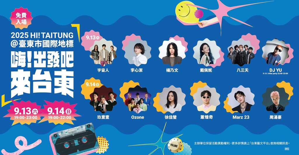 集合千萬卡司,金曲歌后、樂團與超人氣偶像、音樂人的演唱會,將於9月13、14日一連兩天在臺東市國際地標登場。活動免費入場。