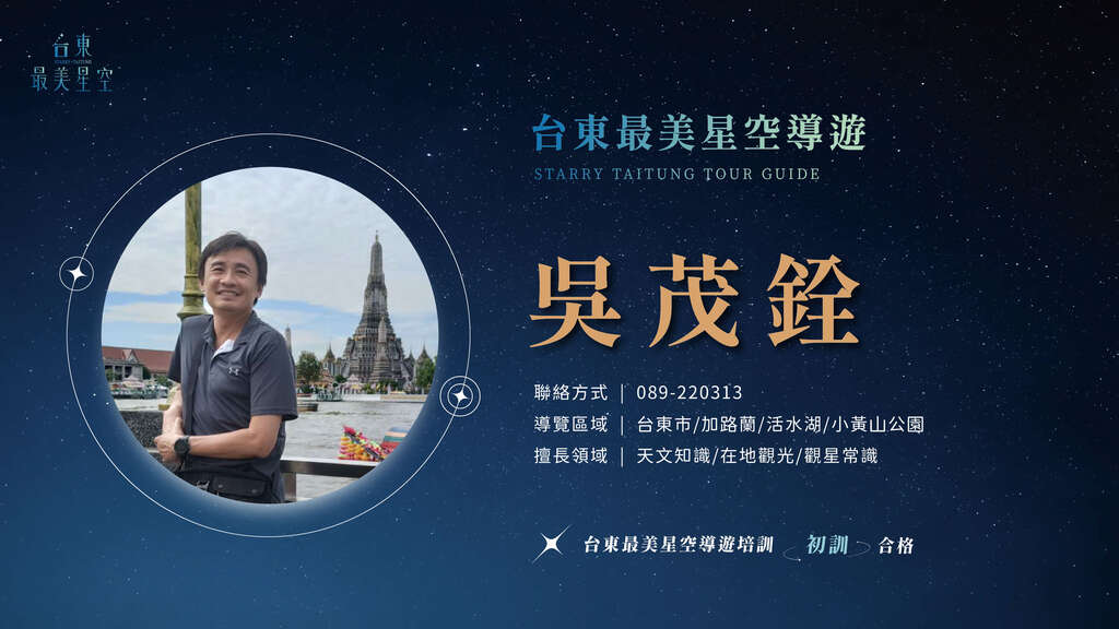 您的瀏覽器並未啟動JavaScript,請開啟瀏覽器JavaScript狀態或是升級成可執行 JavaScript 的瀏覽器,以便正常使用網頁功能。 電話 089-220313導覽區域 台東市/加路蘭/活水湖/小黃山公園專長 天文知識/在地觀光/觀星常識介紹定位點通過2025台東最美星空認證導遊初訓繼續閱讀