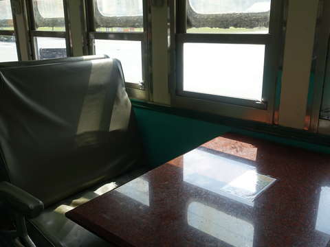 火車上的座椅搖身一變,成了餐廳的用餐椅