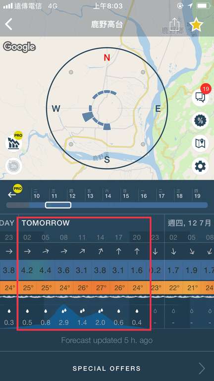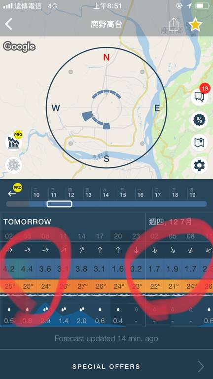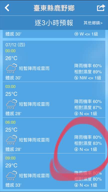 目前依據中央氣象局於清晨04:00發佈陸上颱風警報,鄉鎮預報7/11風速約為2~3級,(9~10節)降雨率40~60%,7/11考量風速及人員安全,當天活動取消、而7/12日鹿野地區上午降雨機率60~80%。