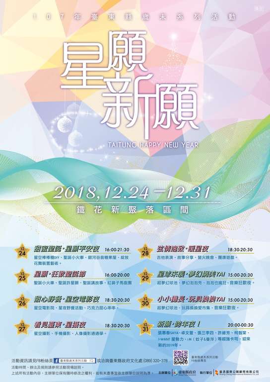 2018臺東縣歲末系列活動「星願新願」12/24-12/31在鐵花新聚落辦理