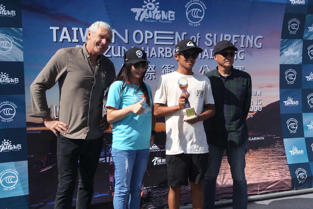 臺東縣政府交通及觀光發展處江慧卿處長代表饒縣長出席恭喜選手,並親自頒發由來自西班牙現住在東河的環保藝術家-JOSH(賈許),精心以來自東海岸的海洋環保廢棄物重新高溫窯燒創作的獎盃給得獎選手。Marco Giorgi(馬可·喬治)獲獎後表示,他今天的榮耀都是來自於家人的鼎力支持,因為家人的鼓勵及安慰,讓他在不斷的失敗中學習及改進衝浪的技巧,所以今天才可以在臺灣臺東獲得這個至上榮耀。