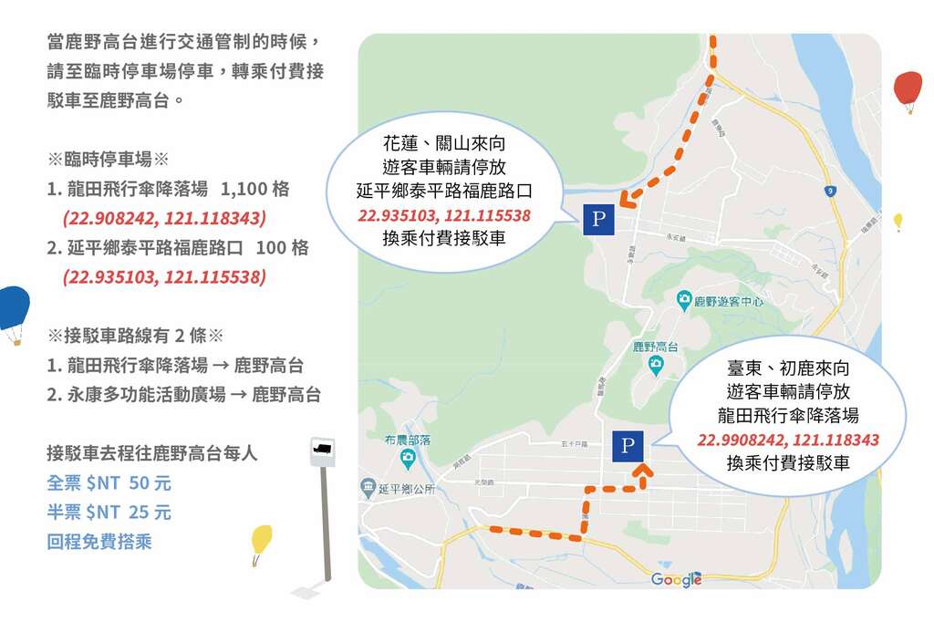👉到指定停車場停車,轉乘付費接駁車至鹿野高台⛰️