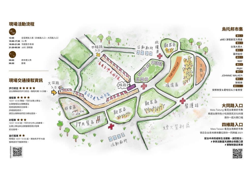 貼心小提醒:為了讓大家能有一個安全及最佳的活動場地,12/31日上午8-12時活動場地全區是將封場,民眾可至防疫管制站(四維路及大同路)等候入場。