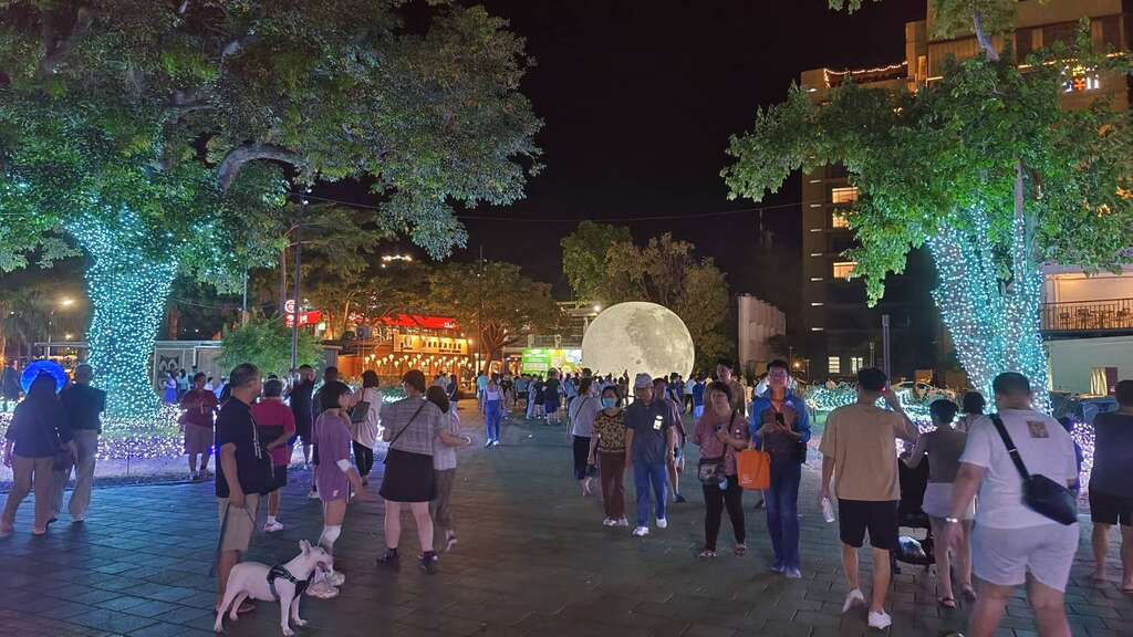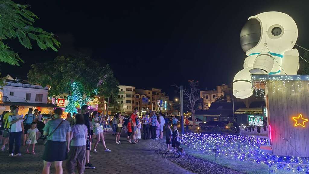 因為熱氣球嘉年華也為台東市區帶來一波暑期觀光熱潮,爆滿人潮昨天湧入鐵花新聚落市集,欣賞鐵花燈之祭最新作品「璀璨星際」,包括太空忘憂、流星隧道、時空瀑布、月之魅影、行星圓舞曲、12星座長廊等6大主題,各個主題前都是拍照人潮,各市集攤商前也湧現人潮、熱鬧不已。