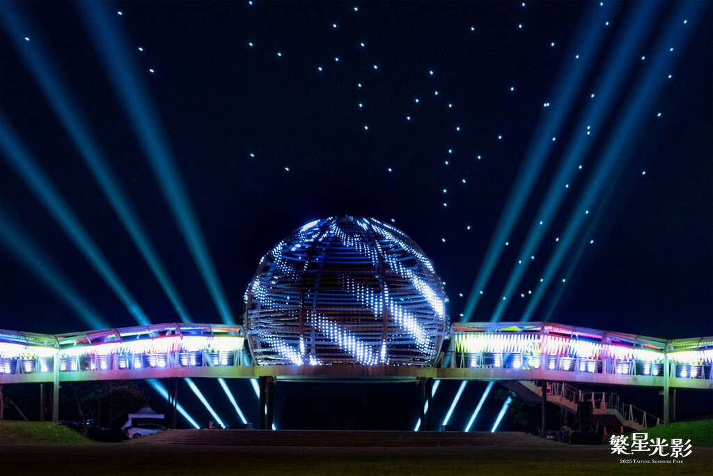 臺東縣政府推出品牌活動-「台東最美星空」,近日再傳捷報,由臺東縣政府交通及觀光發展處策劃的「2025繁星光影」,結合空間設計、燈光藝術與科技創新,成功將臺東海濱公園原有的國際地標球體結構重新活化,蛻變為一座宛如宇宙星球降臨人間的夢幻場域。展覽不僅打破傳統地景裝置的呈現方式,更透過視覺藝術創作轉化成地方生命力,展現出臺東在地文化復興與藝術再生的堅韌精神。