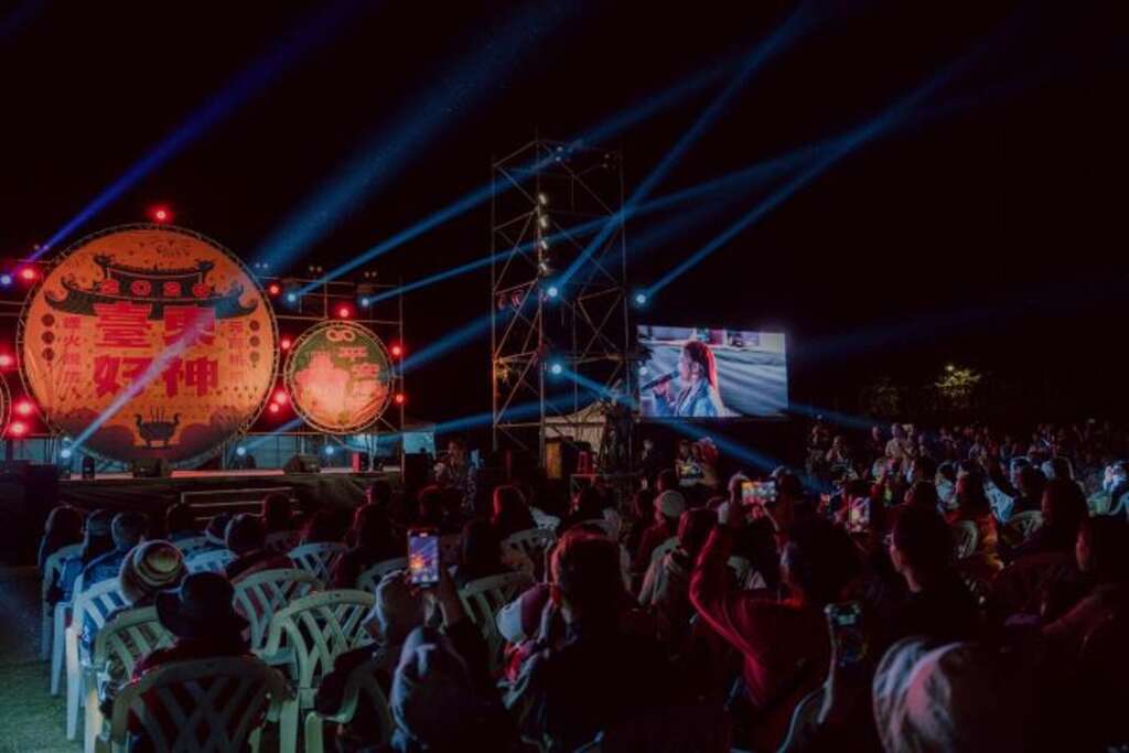 精彩演出接力上陣,包括臺東在地團隊東海龍門天聖宮東海戰鼓帶來震撼鼓陣,來自臺中的狂夢藝術以跨域馬戲與火舞演出驚豔全場;台語創作歌手曾瑋中 以動人歌聲唱出土地情感,而壓軸登場的金曲歌后黃妃,更以深厚唱功與經典曲目引發全場大合唱,也跟市長陳銘風合唱臺東金曲來去臺東,將晚會氣氛推向最高潮。