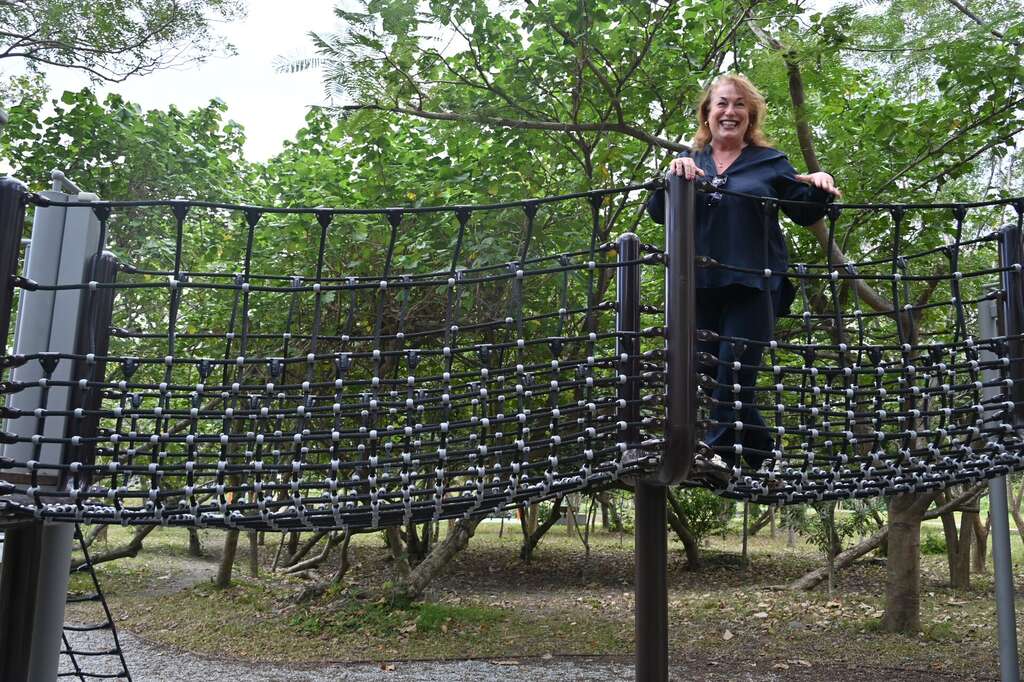 IPA主席 Robyn Monro Miller造訪後提到,臺東森林公園遊戲場令人印象深刻,它不只是遊具設施,而是一個讓孩子透過自然探索與身體活動學習的環境。腦科學研究顯示,當孩子在自然環境中自由玩耍、攀爬與探索時,大腦神經活動會更加活躍,這些經驗能促進神經發展(neurodevelopment),並強化感覺統合與身體協調能力。像這樣具有挑戰性、帶有適度冒險的遊戲(risky play),也能幫助孩子建立自信、培養情緒韌性與問題解決能力。臺東把森林、生態與遊戲融合在一起,為孩子創造一個支持大腦發展與身心成長的環境,這正是兒童友善城市非常重要的典範。